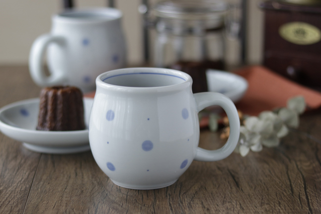 水玉ドットの ふくよかで大きなカップだから 梅山窯 ばいざんがま |