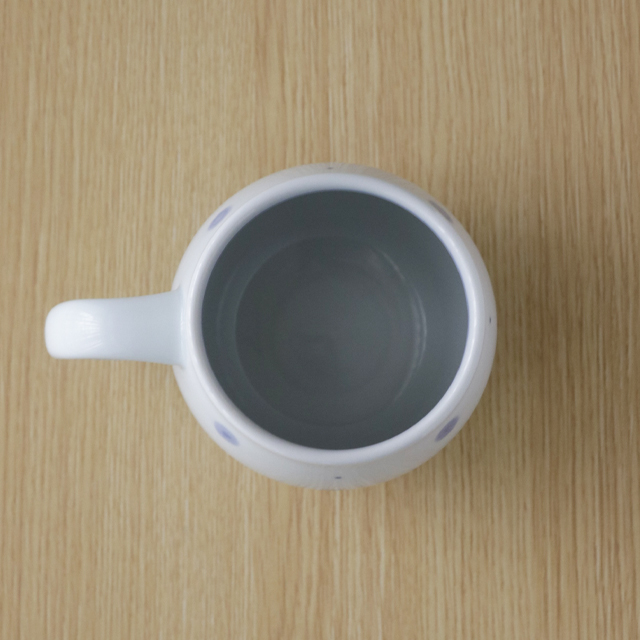 ![]() 梅山窯さんのマグカップのなかでも特別大きなサイズ。 水玉とドットの組み合わせが、なめらかな白磁に映えて爽やかな印象。 ![]() ![]() 持ち手の幅は1.5cmくらい。 ![]() 高さは10cmくらい。カップのかたちは膨らみある樽型です。 ![]() カップのかたちは膨らみある樽型です。 ![]() ![]() 口径は8.3cmくらい。ほんのり青味掛かったなめらかな白磁。 ![]() 底の直径は6.5cmくらいです。 底には梅山窯さんの「梅」の窯印。 |