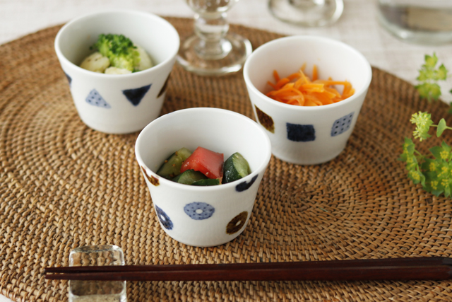 ![]() フリーカップとしても素敵♪ 小さめサイズの蕎麦猪口ですので上品に緑茶を淹れても似合います。 ![]() フルーツやアイスクリームやヨーグルトなどのデザートカップとしてもおすすめ。 ![]() 和え物や酢の物などの小鉢としても重宝します。 「蕎麦猪口」は幅広い使い方ができる万能のうつわ。 ![]() 藍色の濃淡を活かした染付に鉄色が加わってイロリ工房さんらしいセンスを感じます。可愛らしさもありながら奥深さもある絵柄が魅力。 ![]() これくらいの大きさ。砥部焼としてはやや軽めとなります。 ![]() はがきと比べて。 ![]() イロリ工房さんの「そばちょこ(小)」は全部で3柄。まる紋以外に「さんかく紋」と「しかく紋」がございます。 |