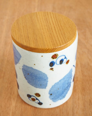 ブルー木の葉の 木製の蓋との組み合わせが 森陶房 もりとうぼう |