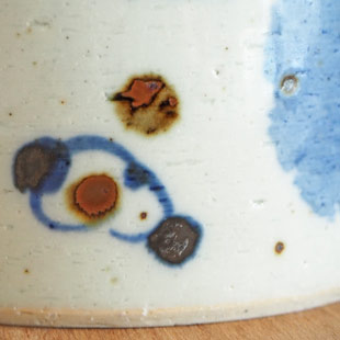 | 色・特徴 | ほんのりグレー掛かった荒土の半磁器。表面に大小の鉄点 落ち着いた色調の藍と茶の染付 窯出し時期などによって多少の違いがございます |