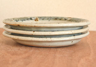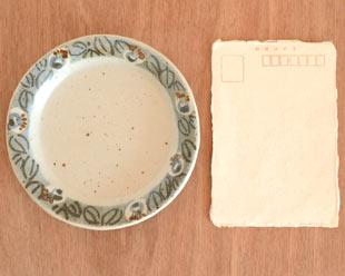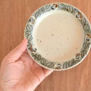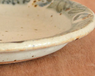 ![]() 気取りないあたたかみある絵付けだから、ティータイムにもぴったり。ほっこりとした気持ちになります。 ほどよい深みのあるお皿だから少々汁気のあるお料理の取皿にも重宝。砥部焼らしく厚手ですので、毎日の食卓で気兼ねなくお使いいただけます。 ![]() 和菓子もとてもよく似合います。おもてなしのお皿としても♪ ![]() 森香織さんの「青い鳥のマグカップ」と組み合わせても素敵です。 ![]() 素地が柔らかいうちに網目の布をおさえて「布目」をつけています。絵付けに雰囲気あるにじみがうまれます。 こげ茶色の大小の鉄点が入ってより味わい深く。 マット調の素地は、柔らかなグレー掛かった色合いです。 ![]() 厚みを持たせた縁。 ![]() お皿1枚1枚手づくり手描きらしい違いがあります。 手作りならではの微妙なふちのゆがみが、それぞれに個性をもたらしています。 |