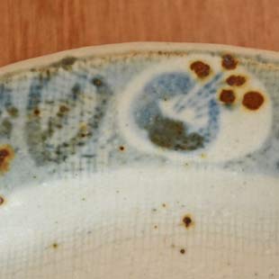 | 色・特徴 | ほんのりグレー掛かった荒土の半磁器。表面に大小の鉄点 茶色掛かった藍色の染付と茶色の染付 窯出し時期などによって多少の違いがございます |