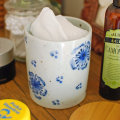 ![]() 土が混ざった素朴な風合いの砥部焼と木製の蓋との組み合わせが、お洒落なキャニスター。開いた花をモチーフにした雰囲気ある絵付けが素敵。 ![]() 適量で450ccくらい入るサイズです。 ![]() ゴムのパッキンが付いていますので、蓋を閉めた際に密封性があります。 ![]() 蓋を閉めた高さは11.7cmくらい。本体のみの高さは11cmくらいです。 ![]() 直径は9.5cmくらい。内寸の直径9cmくらいです。 ![]() 高台の直径は8.5cmくらい。 ![]() ひとつひとつ手づくり手描きらしい違いがあります。 | ![]() そのまま置いても素敵なキャニスターだから、いつも使っているコーヒー豆や紅茶などを飾りながら収納できます。お茶の時間、お菓子を入れても♪ また、絵柄違いで砂や塩を入れても便利です。 ![]() 化粧道具などを飾りながら収納♪ 「花文」以外に「ブルー木の葉」「ガーベラ」「水玉」「小花」と全部で5柄ありますので、絵柄違いで揃えても楽しいですよ。 ![]() 素朴な素地によく似合う、気取りないあたたかみある絵付け。 こげ茶色の大小の鉄点が入ってより味わい深い雰囲気に。マット調の素地は柔らかなグレー掛かった色合いです。 ![]() 下の方に森陶房さんの窯印が押されています。 ![]() これくらいの大きさ。 ![]() はがきと比べて。 |