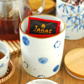 ![]() 土が混ざった素朴な風合いの砥部焼と木製の蓋との組み合わせが、お洒落なキャニスター。2種類の水玉の雰囲気ある絵付けが素敵。 ![]() 適量で450ccくらい入るサイズです。 ![]() ゴムのパッキンが付いていますので、蓋を閉めた際に密封性があります。 ![]() 蓋を閉めた高さは11.7cmくらい。本体のみの高さは11cmくらいです。 ![]() 直径は9.5cmくらい。内寸の直径9cmくらいです。縁は茶色で染められています。 ![]() 高台の直径は8.5cmくらい。 ![]() ひとつひとつ手づくり手描きらしい違いがあります。 | ![]() そのまま置いても素敵なキャニスターだから、いつも使っているコーヒー豆や紅茶などを飾りながら収納できます。 絵柄違いで砂や塩を入れても便利。 ![]() お茶の時間も一段と楽しくなりそう♪ 「水玉」以外に「ブルー木の葉」「花文」「ガーベラ」「小花」と全部で5柄ありますので、絵柄違いで揃えても楽しいですよ。(縁を茶色で染めているのは「水玉」のみとなります) ![]() 素朴な素地によく似合う、気取りないあたたかみある絵付け。 こげ茶色の大小の鉄点が入ってより味わい深い雰囲気に。マット調の素地は柔らかなグレー掛かった色合いです。 ![]() 下の方に森陶房さんの窯印が押されています。 ![]() これくらいの大きさ。 ![]() はがきと比べて。 |