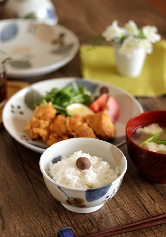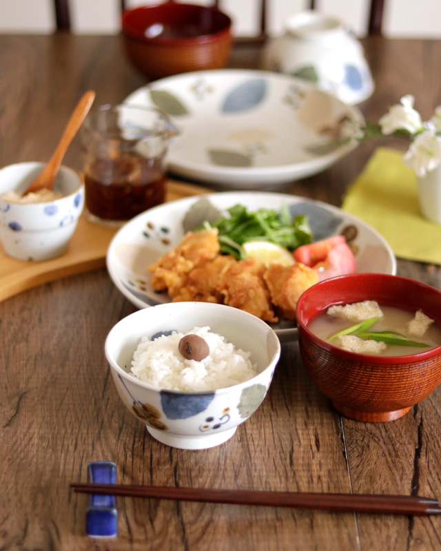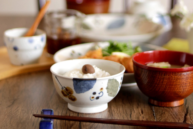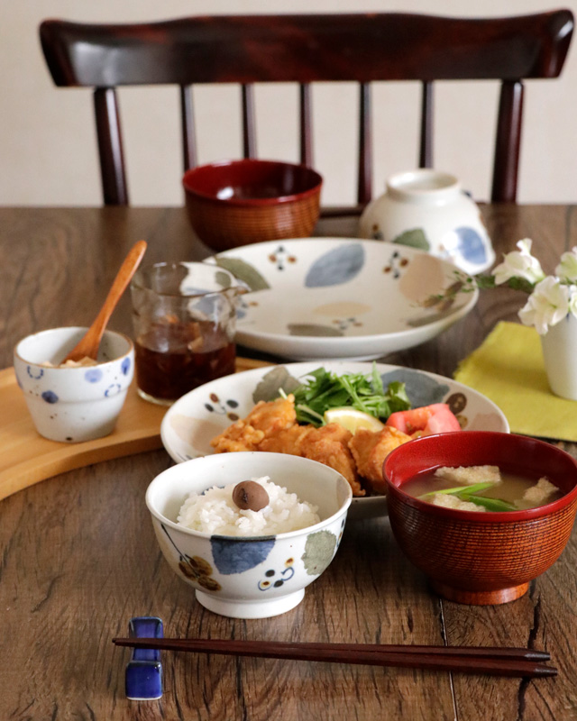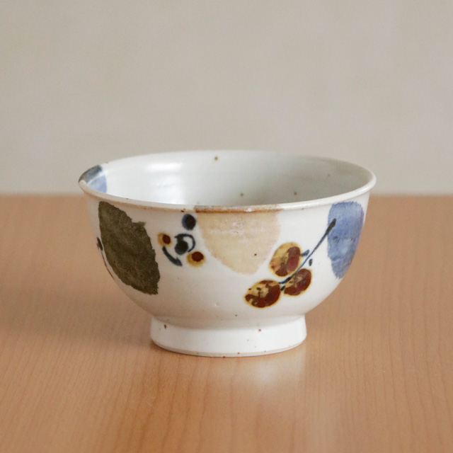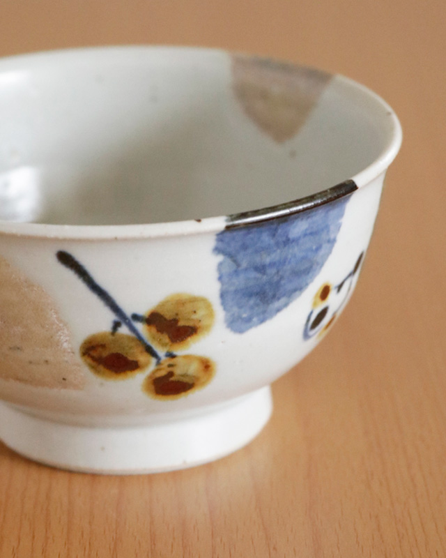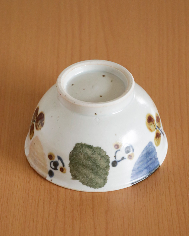 | 色・特徴 | ほんのり生成り掛かった素地。表面に大小の鉄点。 藍色・茶色・緑色の絵付け。 窯出し時期などによって多少の違いがございます |