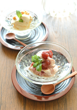 ガラスの器といえばアイスやフルーツなどのデザートは定番♪涼しげに美しく引き立ちます。