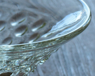 光の当たり方でいろいろな表情に変化します。ほんのり飴色に輝く、やらわかいガラスのなめらかさ。