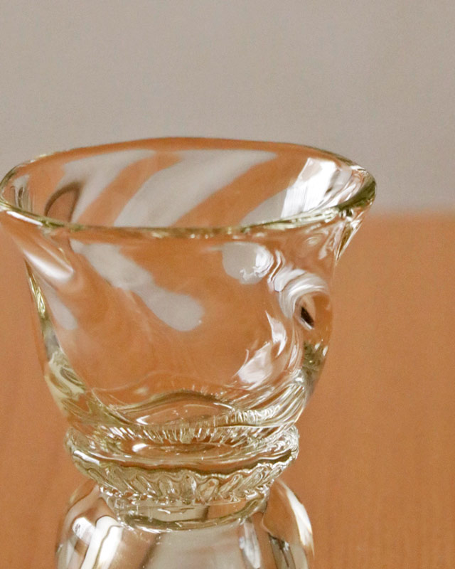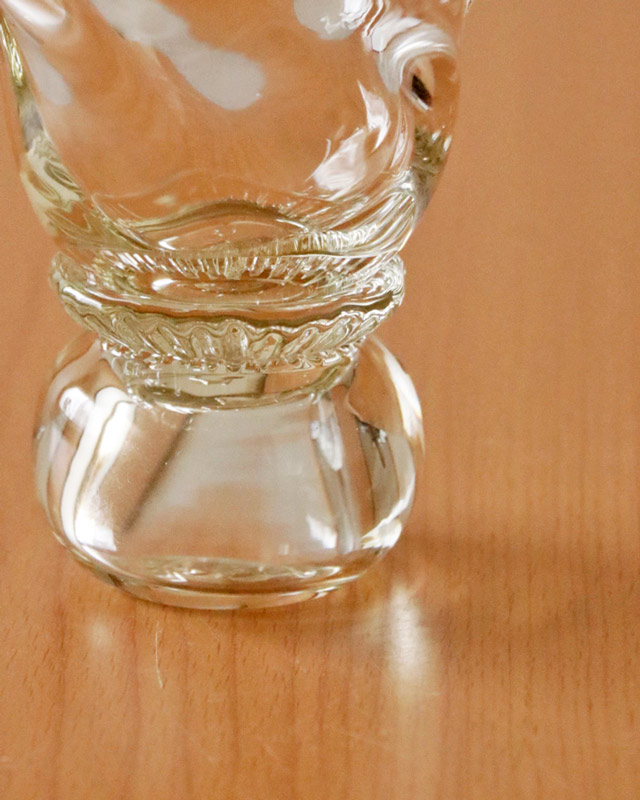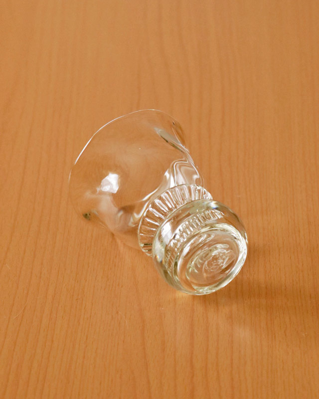 ![]() 「吹工房」村上恭一さんの吹きガラスの作品。ひとつひとつガラスに命を吹き込むように、丁寧に手づくりされたグラスです。 ぽってりと厚みあるグラスですので砥部焼との相性もぴったり。丈夫なので普段使いとしても気兼ねなくお使いいただけます。 ![]() グラスの高さは9cmくらいです。グラス部分の高さは5cmくらい。 ななめに入ったモールがやわらかな美しさ。 ![]() 光の当たり方でいろいろな表情に変化します。 ![]() 丸みを持たせて大きくつくられた高さ3cmくらいの玉足部分。グラスがより特別な雰囲気に。 ![]() 厚手でぽってりとしていますので滑らかな口あたり。吹きガラスらしいシルエット。 ![]() 上から見たところ。口径は7cmくらいです。 ![]() 底は直径4.5cmくらい。安定感があります。 |