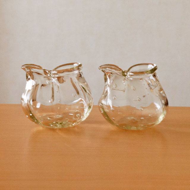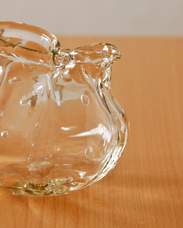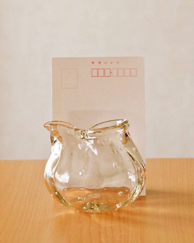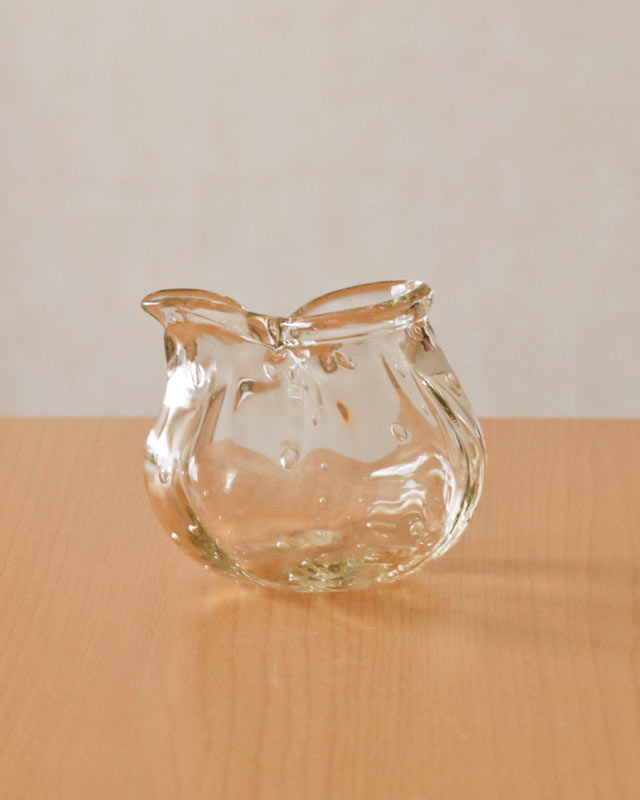 ![]() 「吹工房」村上恭一さんの吹きガラスの作品。ひとつひとつガラスに命を吹き込むように、丁寧に手づくりされた作品です。 ![]() ぽってりと厚みある片口ですので砥部焼との相性もぴったり。 ![]() 高さは9cmくらいです。 ![]() 膨らみあるかたちが素敵。光の当たり方でいろいろな表情に変化します。 ![]() 上から見たところ。口径は6.5cmくらいです。 ![]() 出来る限り後引きしにくいように注ぎ口がかたちづくられています。 ![]() 底に当たる部分の直径は5cmくらい。