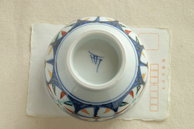 ![]() 小ぶりで小鉢に近い形のお茶碗。 藍色に赤、グリーン、金彩の絵付が鮮やか。 使うたびに明るい気持ちにしてくれる器。 ![]() 茶碗らしくない形にオシャレな絵付け。こんな器は普段は小鉢として持っていても、来客用のお茶碗としても使えてとても便利。 ![]() 上からみたところ。 ![]() はがきと比べて。 |