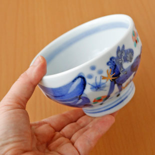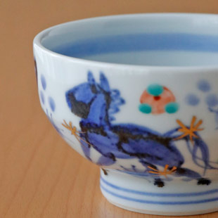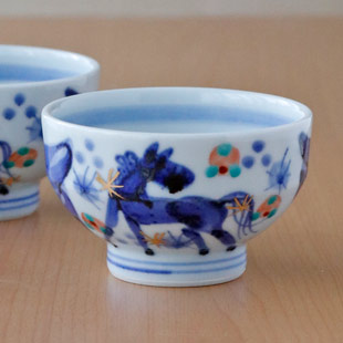 ![]() 小さめの上品な雰囲気のお茶碗。金彩が入って品格を感じる佇まいです。 ![]() 西岡工房さんの定番の絵付け「馬」。 ![]() 手描きらしい伸びやかさを感じます。 ![]() 器の中にも藍色で絵付けがほどこされています。 ![]() ![]() 高台の直径は5.5cmくらい。 |