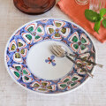 藍の染付に赤・黄・緑の絵付け組み合わせた華やかな大皿ですので