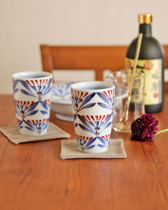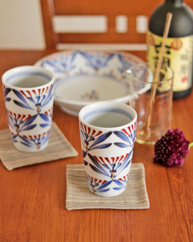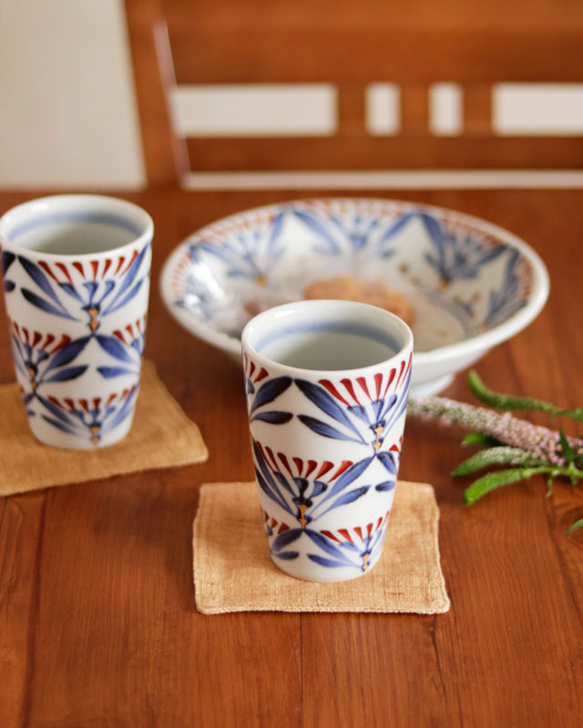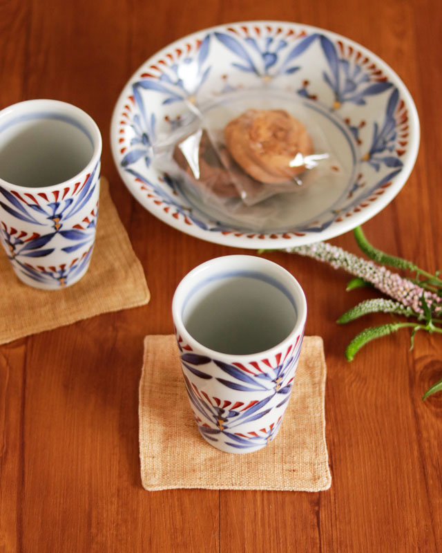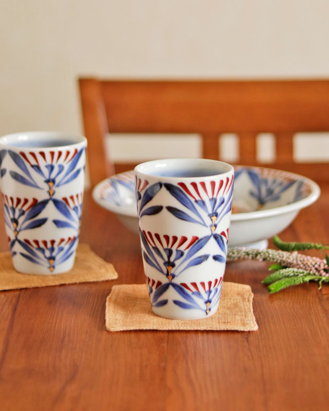 | 色・特徴 | なめらかな白磁 藍色の染付け、赤・金彩の絵付け 窯出し時期などによって多少の違いがございます |