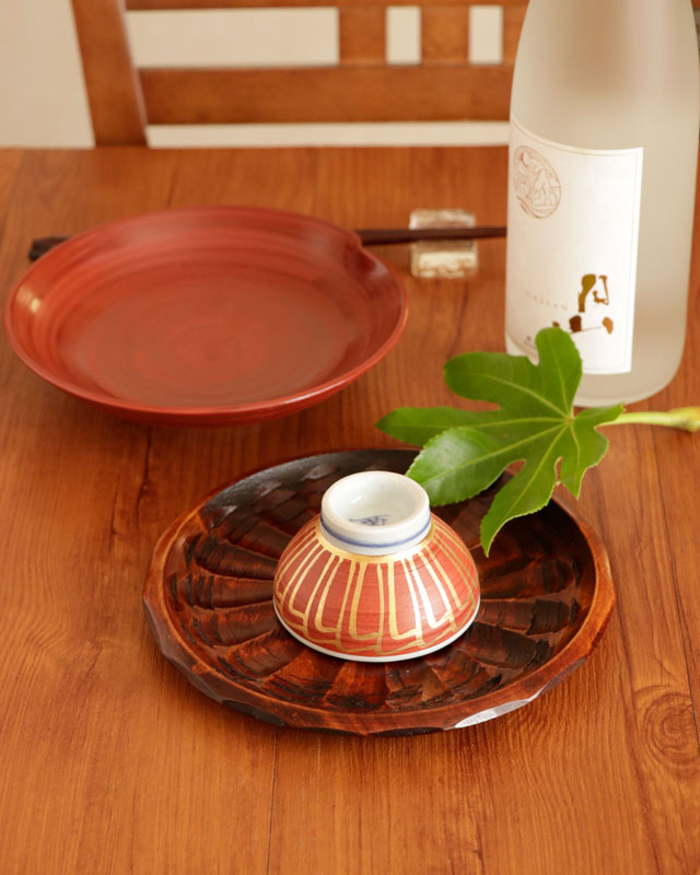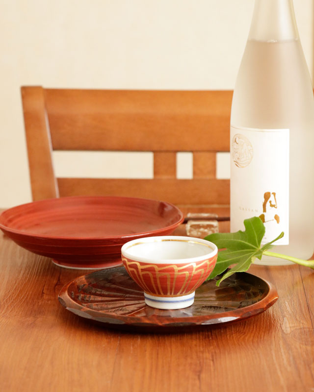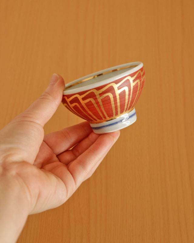 鮮やかな赤に引き立つ金彩が素敵ぐい呑み。