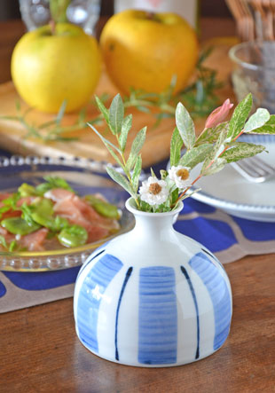 爽やかな色合いと、ぽってりした形がとても気に入っています。鮮やかな色の花も、淡い色の花もどちらも似合います。