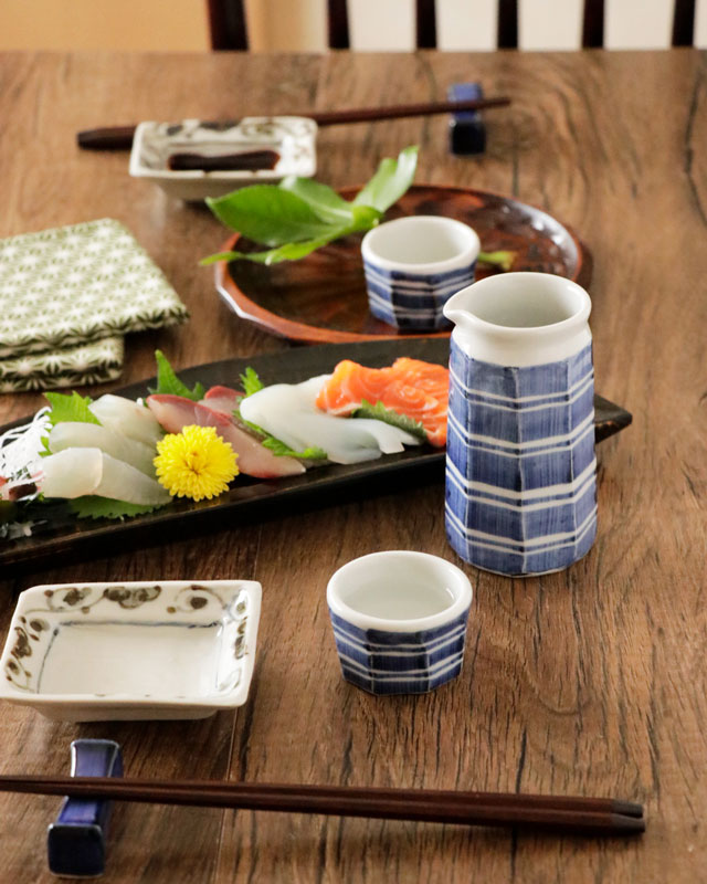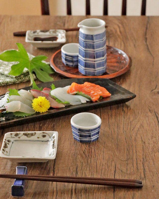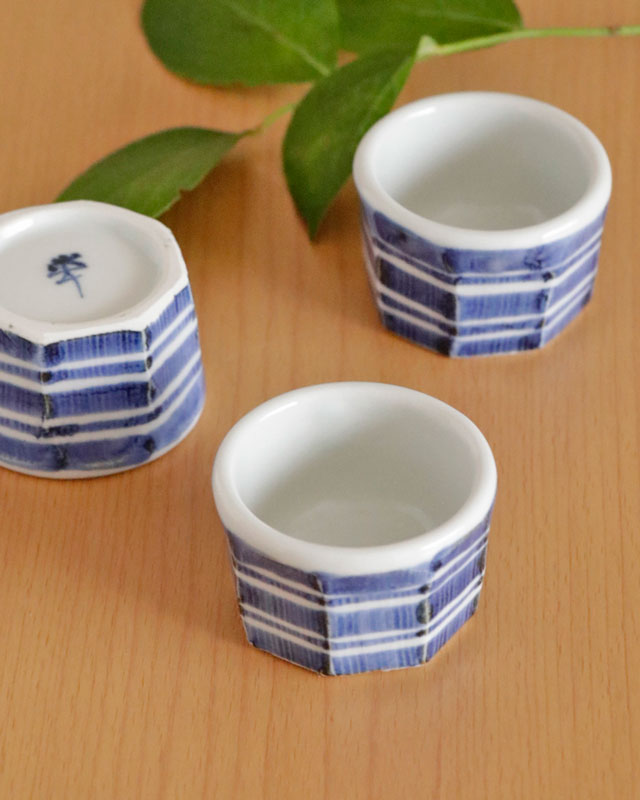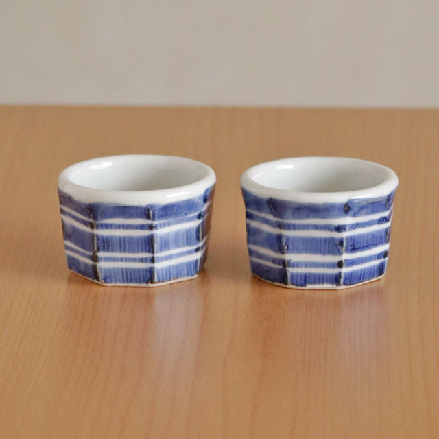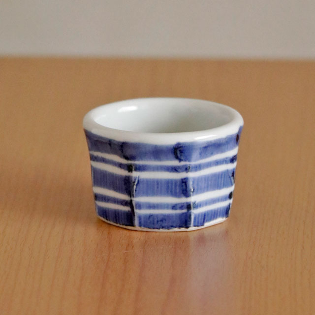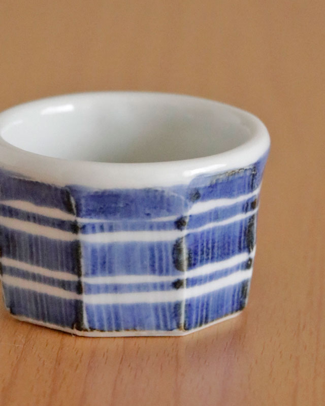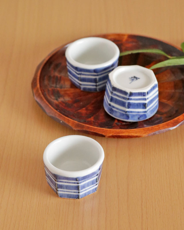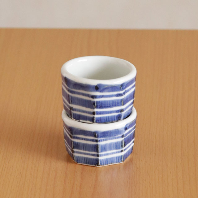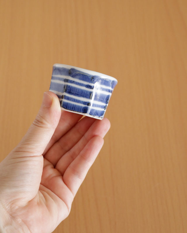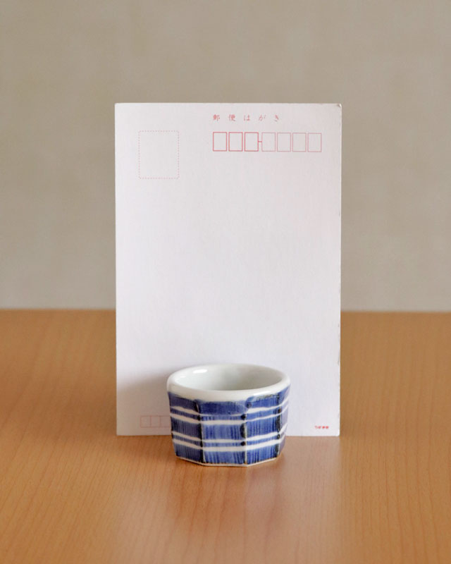 ![]() 和食器の佇まいある雰囲気と向井窯さんらしいほっこりとした可愛らしさとのバランスが素敵。 ![]() お洒落なデザインですので、お客様のおもてなしの酒器としてもおすすめ。 ![]() 面を取った縦の筋に藍の染付が滲んで深みある雰囲気となっています。 シンプルな中にも味わいを感じる絵付け。 ![]() 2個重ねると7cmくらいの高さ。 すっぽりと入るかたちではありませんので上に乗せる重なり方となります。 ![]() これくらいの大きさ。 ![]() はがきと比べて。 |