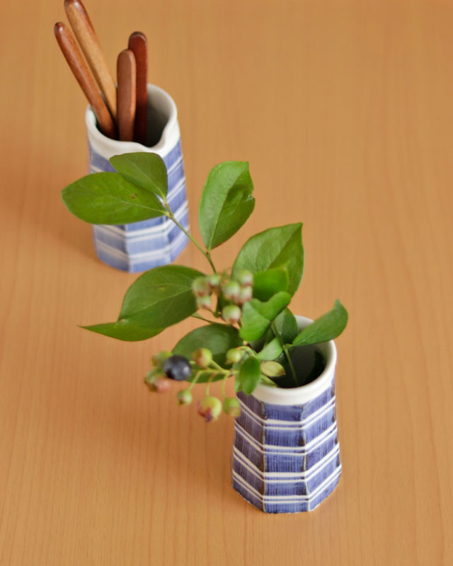 ![]() 和食器の佇まいある雰囲気と向井窯さんらしいほっこりとした可愛らしさとのバランスが素敵。 お洒落なデザインですので、お客様のおもてなしの酒器としてもおすすめ。 ![]() ドレッシングやソースなどを入れても愛用できます。 ![]() カトラリー立てとしたり花器としたりと可愛らし筒入れとしての使い方もおすすめ♪ ![]() 面を取った縦の筋に藍の染付が滲んで深みある雰囲気となっています。 シンプルな中にも味わいを感じる絵付け。 ![]() これくらいの大きさ。 ![]() はがきと比べて。 ![]() 同じ絵柄の「ごす巻のぐい呑」もあります。セットで揃えても素敵です。 |