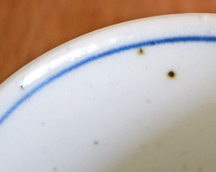 | 色・特徴 | やや青みがかった荒土の白磁 表面に大小の鉄点 藍色の染付 窯出し時期などによって多少の違いがございます |