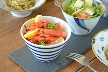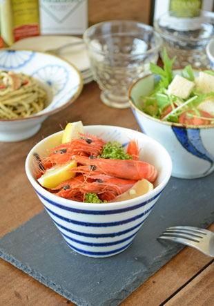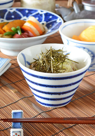 ![]() お洒落なかたちの鉢だからシンプルな料理をさっと盛ってもいつもと違ったイメージに♪ サラダや煮物や揚げ物などの普段の料理を気軽に素敵に演出してくれます。 ![]() お碗として上品に麺類を盛っても♪季節の炊き込みご飯などもよく似合います♪ その他に枝豆を盛ったりフルーツを盛ったり・・といろいろな使い方をお楽しみいただけます。 ![]() 大小の鉄点が浮き出た荒土の素地。荒土のため縁の部分がつぶつぶとしている場合もあります。 ![]() うつわの表面はほんのりマット調の落ち着きある光沢。素地と絵付けに合わせて釉薬にもこだわってつくられています。素朴な風合いに味わいある手描きの染付がとてもよく似合います。 ![]() これくらいの大きさ。 ![]() はがきと比べて。 ![]() その他に「ねじり文」「梅」「染付花」「菊文」の4柄あります。絵柄違いで揃えても素敵です。 |