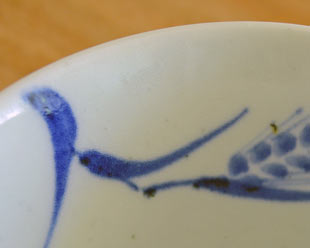| 色・特徴 | やや青みがかった荒土の白磁 表面に大小の鉄点 藍色の染付 窯出し時期などによって多少の違いがございます |