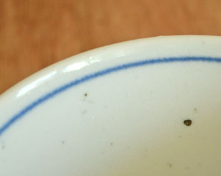| 色・特徴 | やや青みがかった荒土の白磁 表面に大小の鉄点 藍色の染付 窯出し時期などによって多少の違いがございます |