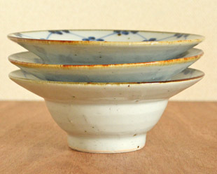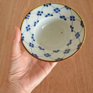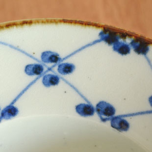 | 色・特徴 | やや青みがかった荒土の白磁 表面に大小の鉄点 藍色の染付 窯出し時期などによって多少の違いがございます |