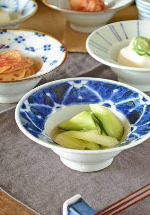 ![]() 直径13cmの広めのリムが特徴の小鉢。鉄分を混ぜた素地を使っているので、表面に大小の鉄点が表れて味わいがあります。手描きらしい染付も魅力。 ![]() 実際に料理を盛ることができる部分は直径7.5cm×高さ3.5cm。丸みある小さな鉢に3cm幅のリムが囲んだような形の小鉢です。 小鉢の高さは5cmくらい、料理を盛ることができる部分のうつわの深さは3cmくらいです。 ![]() 藍の染付で文様を描くのではなく白磁の部分を文様に。皐月窯さんらしいセンスを感じます。 ![]() 高台の直径は5cm弱くらい。 ![]() 皐月窯さんの「5」の窯印。 ![]() 絵付けの濃さや色合い・大きさなど、ひとつひとつ手づくりらしい違いがあります。 ![]() 3個重ねると8cmくらいの高さ。見た目によらず意外とコンパクトに重なります。 |