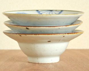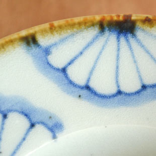| 色・特徴 | やや青みがかった荒土の白磁 表面に大小の鉄点 藍色の染付 窯出し時期などによって多少の違いがございます |