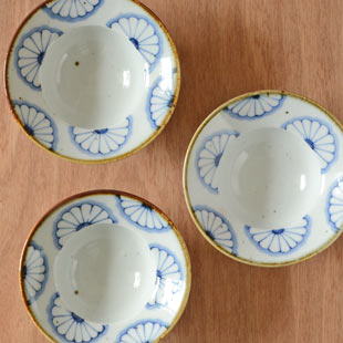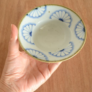![]() 直径13cmの広めのリムが特徴の小鉢。鉄分を混ぜた素地を使っているので、表面に大小の鉄点が表れて味わいがあります。手描きらしい染付も魅力。 ![]() 実際に料理を盛ることができる部分は直径7.5cm×高さ3.5cm。丸みある小さな鉢に3cm幅のリムが囲んだような形の小鉢です。 小鉢の高さは5cmくらい、料理を盛ることができる部分のうつわの深さは3cmくらいです。 ![]() 縁の部分は「縁紅」とよばれる鉄色となっているので味わい深い印象。菊をモチーフに、皐月窯さんらしいセンスで文様化された絵柄が素敵。 ![]() 高台の直径は5cm弱くらい。 ![]() 皐月窯さんの「5」の窯印。 ![]() 絵付けの濃さや色合い・大きさなど、ひとつひとつ手づくりらしい違いがあります。 ![]() 3個重ねると8cmくらいの高さ。見た目によらず意外とコンパクトに重なります。 |