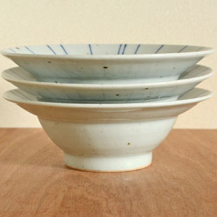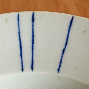 | 色・特徴 | やや青みがかった荒土の白磁 表面に大小の鉄点 藍色の染付 窯出し時期などによって多少の違いがございます |