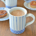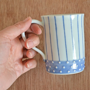 ![]() ゆっくりと過ごしたいときにもぴったりのカップ。 珈琲や紅茶だけでなく、緑茶を淹れてもいつもと違った印象になって素敵です。 その他にも麦茶やジュースなど、冷たい飲み物にも。 ![]() スタイリッシュな珍しいかたちのカップだから、プレゼントとしてもおすすめです♪ ![]() イッチンと呼ばれる技法で、ひとつひとつ丁寧に付けられた白いプチプチ。細いラインは、素地にテンテンの窪みをつけたうえに絵付けをされています。 とても手間のかかる手仕事でつくられたカップ。 ![]() 持ち手はへこみがあるので手に馴染んで持ちやすい。 ![]() これくらいの大きさ。 ![]() はがきと比べて。 |