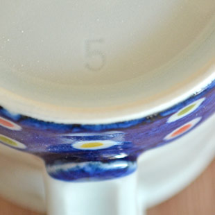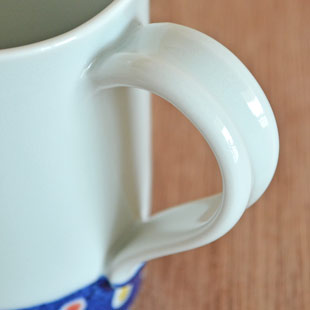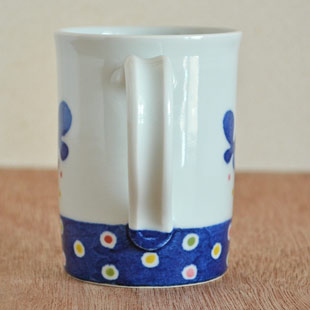 ![]() 筒型の縦に長い形が特徴のマグカップ。 中田千晴さんらしい可愛らしさ溢れる絵付けが素敵。 ![]() 高さは9cmくらい。通常のマグカップの形とは違ったお洒落さがあります。 ひらひらと飛ぶ蝶々が、カップに2つ描かれています。 ![]() 持ち手の幅は1.5cmくらい。 ![]() カップの下の部分には藍色の中にカラフルな水玉もよう。 ![]() 口径は約7mくらいです。 ![]() 底の直径は6.5cmくらい。 ![]() 皐月窯さんの「5」の窯印。 ![]() 絵付けの濃さや色合い・大きさなど、ひとつひとつ手づくりらしい違いがあります。 |