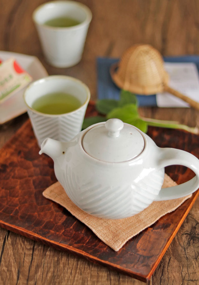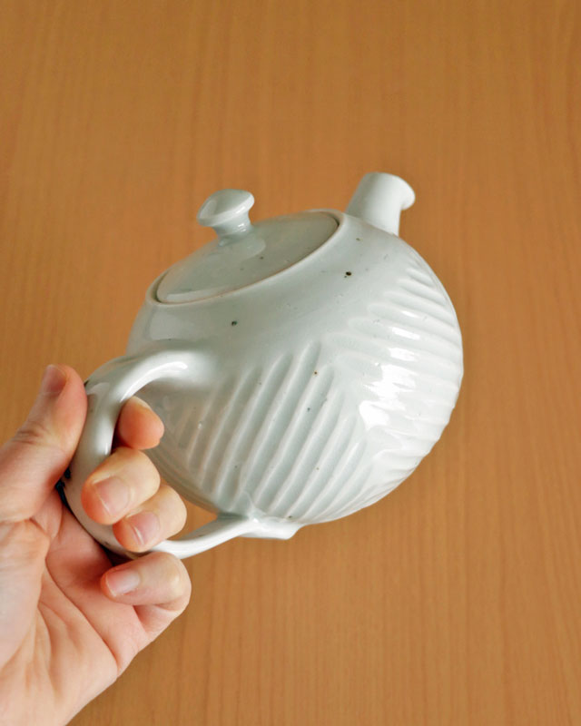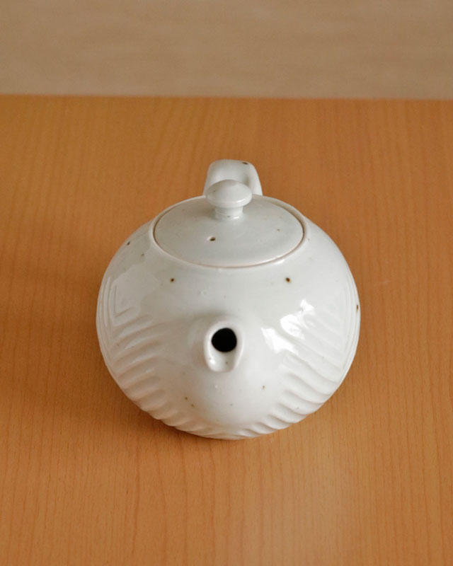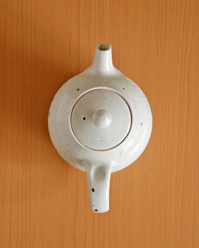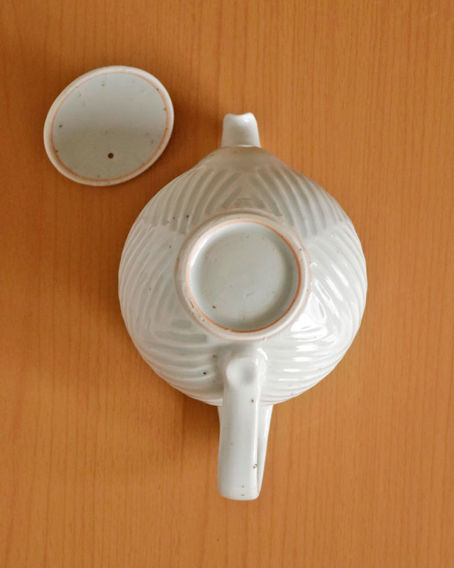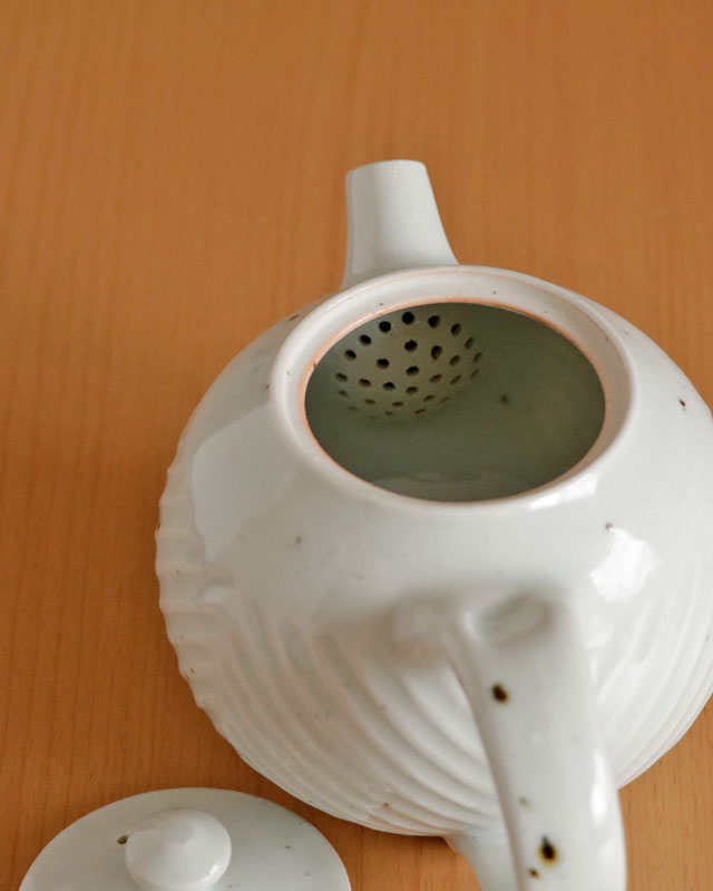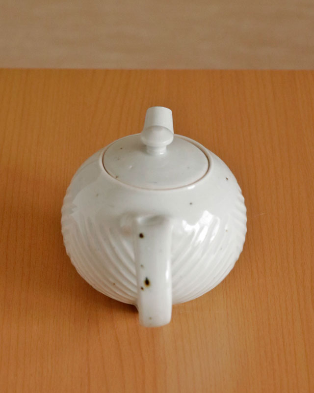 ![]() お茶のひとときにぴったり可愛らしさ。愛用するたびにほっこりとした気持ちに。 ![]() 手仕事らしさ溢れるお洒落なポットですので、お客様のおもてなしにも活躍します。 ![]() カップと揃えても素敵です。 ![]() 大小の鉄点が浮き出た荒土の素地。荒土のため縁の部分が若干つぶつぶとしている場合もあります。 ほんのりマット調の落ち着きある光沢。素朴な風合いに味わいあるしのぎがとてもよく似合います。 ポットはひとつひとつ絵仕事らしい違いがあります。 ![]() 丁寧に付けられた茶葉を濾す小さな穴。小さな茶葉が穴から通るため、お茶を注ぐときには手に持つタイプの網目の茶漉しが必要です。 ![]() これくらいの大きさ。 ![]() はがきと比べて。 |