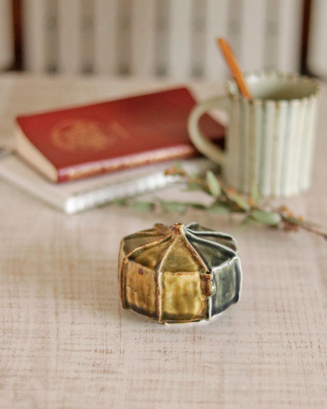 かたちの面白味と色合いを飾りながら楽しみたくなるような作品。