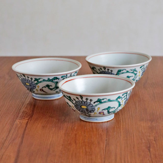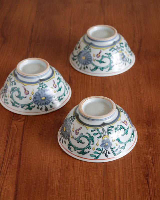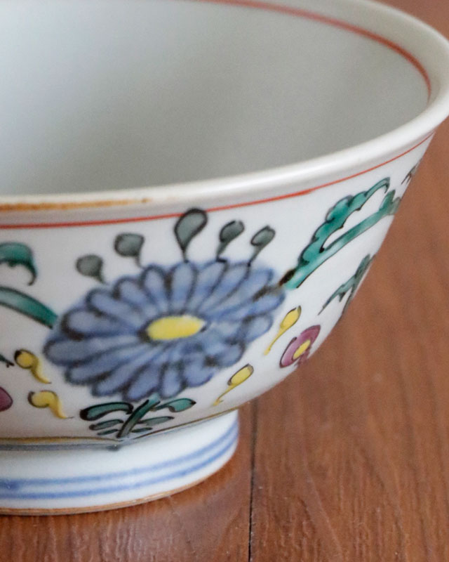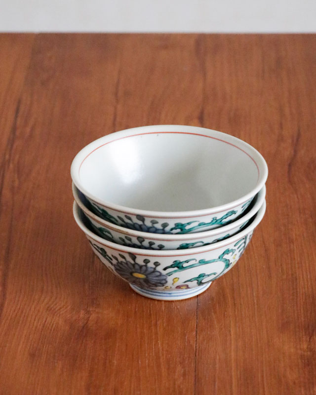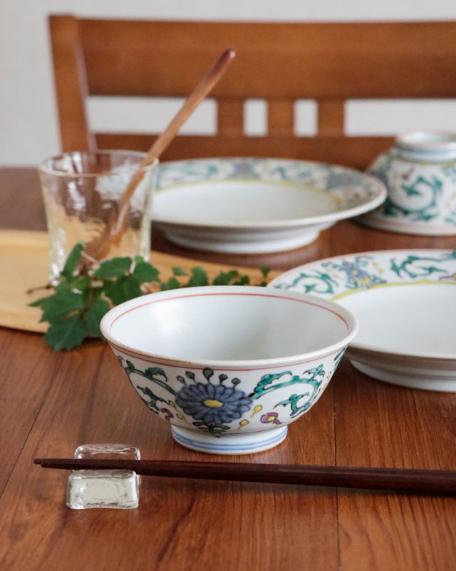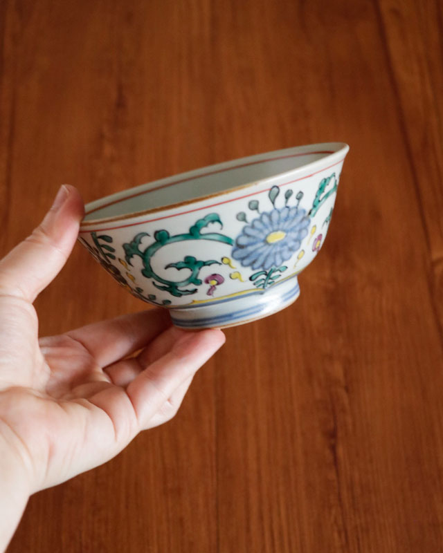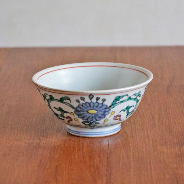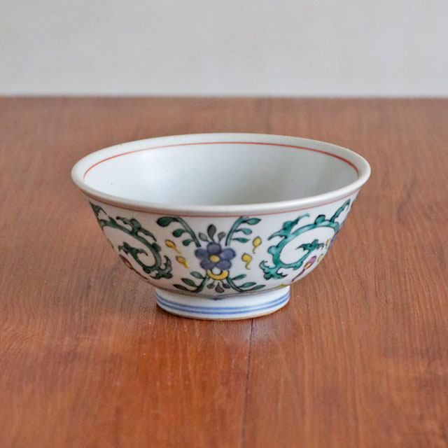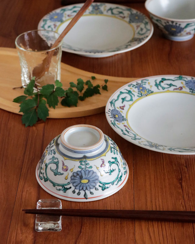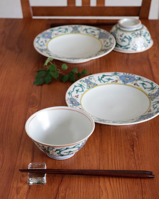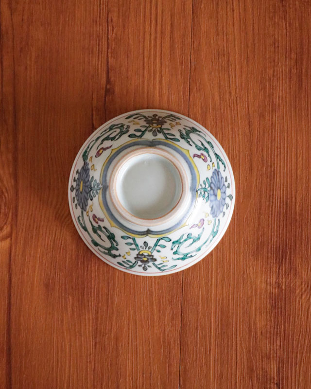 | 色・特徴 | ほんのりグレー掛かった素地 藍の染付、赤、ピンク、緑、黄、黒の絵付け 窯出し時期などによって多少の違いがございます |