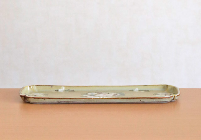 鉄分の多い陶石の粉を使った天然の「赤砥土」でつくられた長方皿。