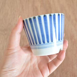 ![]() もちろんお蕎麦のつゆにぴったり。定番のサイズです。なめらかな白磁に藍の染付が涼しげ♪ ![]() お茶やコーヒーにとフリーカップとしていろいろな飲み物に。適量で130ccほど入ります。 その他に味噌汁などの汁碗としたり、ヨーグルトなどのデザートカップとしたり、茶碗蒸しをしたりと、ひとつでいろいろな使い方を楽しむことができます。 ![]() いかにも手描きらしい筆使いが魅力。濃淡ある藍色の染付に手描きならではのぬくもりを感じます。 ![]() はがきと比べて。 ![]() これくらいの大きさ。蕎麦猪口の定番サイズです。 |