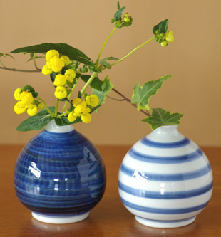 しましまの 藍色のラインがモダンな花器。 陶房遊 とうぼうゆう |