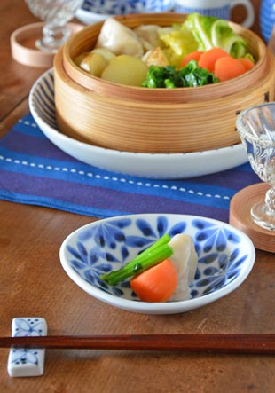 ![]() 深みある小皿なので小鉢感覚で和え物を盛ったり、サラダを盛ったり・・と多用途に活躍してくれます。絵柄違いで揃えても楽しい♪ また、少し大きめなので餃子などの酢醤油の小皿としてもこぼれにくく使いやすい形です。 ![]() 小さめの取鉢としても活躍♪ その他にバケットを盛ったり、和菓子や洋菓子を盛っても素敵。フルーツも良く似合います。 カットしたレモンを入れたり、薬味を入れたり・・と個性的な形の楕円皿だから1枚でも楽しい使い方がいろいろ。 ![]() ひとつひとつ微妙に形が違うので、ぴったりとは重なりませんが、3個重ねると約5cmくらいの高さとなります。 ![]() 味わいある藍色の濃淡。シンプルな絵柄ですがあたたかみを感じるのは、手描きだからこそ。 ![]() 花びらのかたちや藍色の濃さ色合い、器の大きさ・形などひとつひとつ手仕事らしい違いがあります。 |