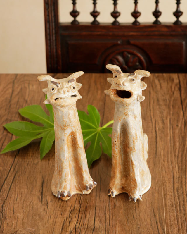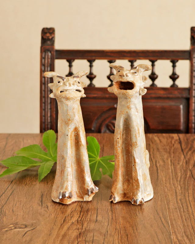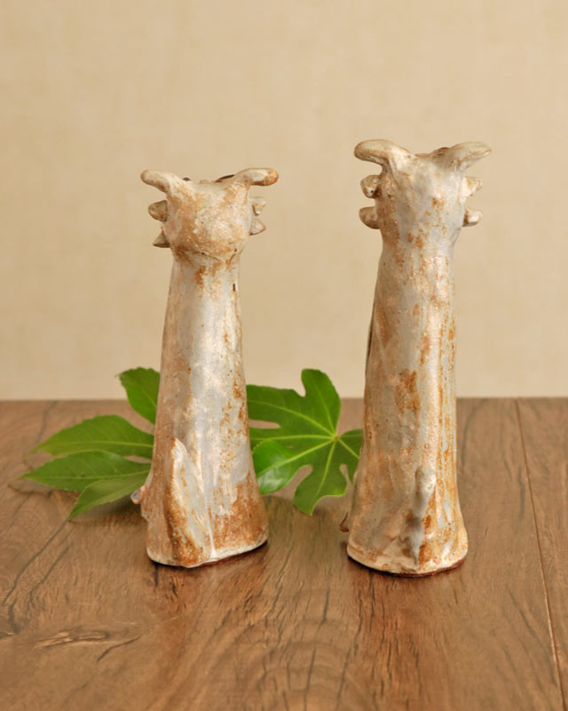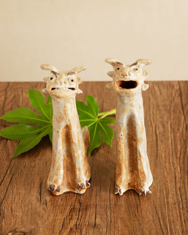 | サイズ | 阿形:横幅6.7cm×奥行10.5cm×高さ21cm前後 吽形:横幅6.7cm×奥行11.5cm×高さ19.8cm前後 |
