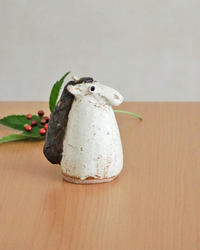 柔らかな白ににタテガミは濃い茶色。表面はすこし光沢ある仕上がり。