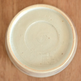 ![]() 直径8cmの定番サイズの蕎麦猪口は、陶彩窯・長戸裕夢(ながとひろむ)さんの作品。 砥部焼の代表的な技法「染付」を大切にしながら、江戸時代の古砥部の文様を参考に考えられた器です。 懐かしさのなかに不思議と新しさも感じる蕎麦猪口です。 ![]() 所々に入った小さな鉄点に味わいを感じます。 高さは6.7cmくらい。そばちょこの深さは6cmくらいです。 大きすぎず小さすぎず、使い勝手のいいサイズです。 ![]() 口径は8cmくらいで、内寸は7.5cm強くらい。底の直径は5cmほどあります。 底に描かれた梅の文様がさりげなく素敵。 縁に鉄を塗った縁紅(ふちべに)が、素朴な雰囲気の藍の染付を引き締めています。 ![]() 裏底の直径は5.5cmくらい。 ![]() 裏には陶彩窯「長戸製陶所」の窯印が押されています。見えにくくなっている場合もございますことご了承ください。 ![]() 3個重ねると12.5cmくらいの高さ。蕎麦猪口は重なりがいいのもうれしいところ。 ![]() これくらいの大きさです。砥部焼としては軽めです。 |