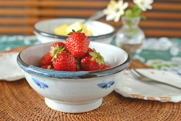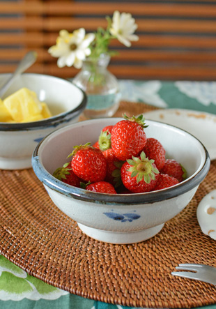 ![]() ひとり分のサラダにも丁度いいサイズ。少量の料理でも納まりよく盛り付けることができる形です。 深みのある鉢だから料理が豪華な印象になります。煮物や和え物など、素朴でぬくもりある絵付けだから和洋中と毎日の食卓で活躍します♪ ![]() 鍋物の取鉢としても。 深みある形だから、スープや炊き込みご飯などのお碗としての使い方も素敵です。 ![]() 細やかな「ひび」のように見えるのは、うつわを覆う釉薬がひびのような状態で固まった「貫入(かんにゅう)」。あえて表現された美しい模様です。使い込むほどに、時間を掛けてゆっくりと変化する貫入の景色を楽しむことができるのも魅力。 この独特の風合いを出すためにオリジナルに作った土と釉薬を使って作られています。 ![]() 少し丸みを持たせた縁部分。ぽってりとしたぬくもりを感じます。 ![]() ひとつひとつ手づくり手描きらしい違いがあります。 ![]() これくらいの大きさです。縁に丸みがあり、持ちやすいかたち。厚手ですので少々重みがあります。 |