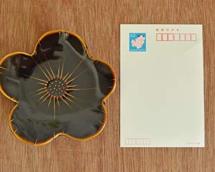 ![]() 和菓子や洋菓子などの菓子皿にぴったり♪穏やかな時間が流れそうです。 ![]() 和え物を上品に盛ったり、取皿としたりと、食卓のアクセントになるかたちです。 ![]() フルーツを盛るだけで素敵に♪お客様のおもてなしにも重宝。さりげなく特別な雰囲気になります。 その他にもアクセサリートレイとしても。飾りながら普段使いのアクセサリーの定位置に♪ ![]() 花の中心部分からのラインは少しだけ盛り上がり黄色掛かって美しい模様をつくりあげています。 ![]() 花びらが反った部分のみ釉薬が掛かっていますので、表と同じ飴色。 ![]() はがきと比べて。 |