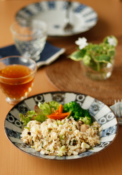 ![]() シンプルなメイン料理のお皿としておすすめ♪ 上品でシックな佇まいの丸皿ですので、ソテーなど普段の料理でもお洒落な印象となります。 ![]() 少し少なめの1人分のピラフやパスタなどの丸皿としても活躍。気軽にカフェのような雰囲気に♪ ![]() 2~3人分くらいの炒め物やマリネなどを盛るお皿としても素敵です。 ![]() 細やかな「ひび」のように見えるのは、うつわを覆う釉薬がひびのような状態で固まった「貫入(かんにゅう)」。あえて表現された美しい模様です。使い込むほどに、時間を掛けてゆっくりと変化する貫入の景色を楽しむことができるのも魅力。 藍の染付の濃淡や滲み具合など手仕事らしさを感じます。 ![]() 縁部分は鉄色。うつわ全体が引き締まって見える効果があります。 ![]() 砥部焼としては珍しく「陶器」の作品となります。そのため軽めです。陶器としては丈夫な方ですが通常の砥部焼のように強くはございませんので、取り扱いにはご注意ください。 ![]() はがきと比べて。 |