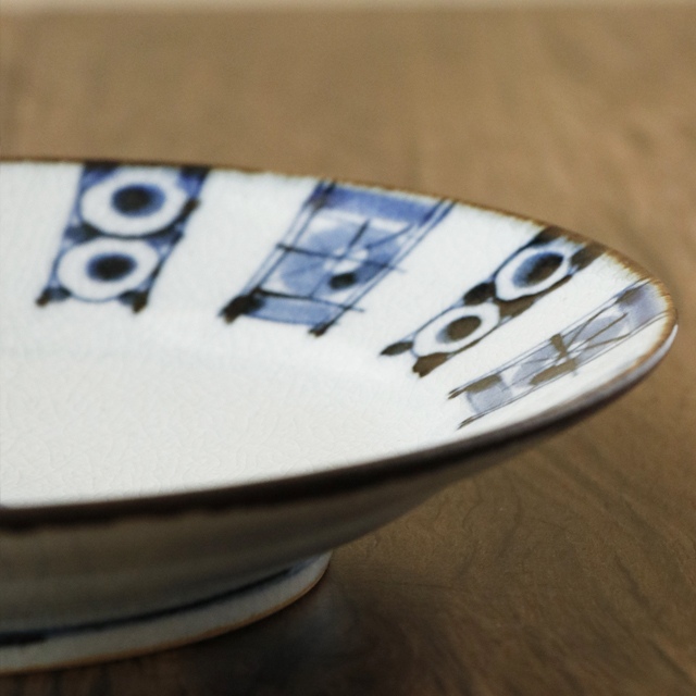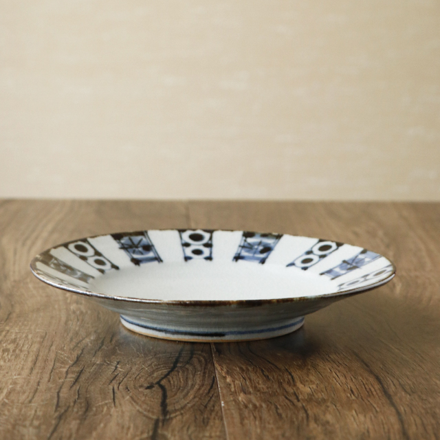 帯文の染付リム皿 グレー調の雰囲気ある素地に 陶彩窯 とうさいがま |