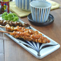 ![]() シンプルな前菜を盛っても素敵♪なめらかな白磁に深みある藍色の染付なので、料理が美しく引き立ちます。 さんま皿としたり、おにぎりやおかずをのせて、朝食やランチの際のワンプレートにしたりと、普段使いのお皿としても重宝します。 ![]() やきとりだって、いつもと違った印象に♪ この長方皿に盛るだけで、普段の料理がお洒落になります。 ![]() ほんのり青味掛かったなめらかな白磁に描かれた、美しい藍色の染付。ぬくもりを感じる手描きらしい筆使いです。 ![]() 1枚1枚藍色の濃さなど若干の違いがあります。手描きなではの味わい。 ![]() すっぽりと重ならずに、フチの上に乗るような重ね方となります。平らな角皿なので、3枚重ねても3.5cmくらいの高さです。 ![]() 同じ形で絵柄違いの「梅文」と「三つ葉」もあります。3柄揃えて、お料理を盛っても楽しい♪ |