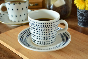 ![]() 雲石窯さんらしいあたたかみある染付が素敵なマグカップ。冷たい飲み物からあたたかい飲み物まで普段使いのカップとしてもおすすめ。 ![]() カップの高さは8cmくらい。マグカップらしい安定感あるかたちです。 ![]() 持ち手の幅は1.5cmくらいです。 ![]() なめらかな白磁によく映える染付。手描きらしいやさしい雰囲気に心なごみます。 ![]() 口径は9cmくらい。砥部焼らしく厚手のカップだから、丈夫で気兼ねなく使えるところもうれしい。 なめらかな口あたりです。 ![]() 底の直径は7cmくらい。 ![]() 底には雲石窯さんの「雲石」の窯印。 ![]() カップの大きさや藍色の濃さなど手仕事らしいの違いがあります。手づくりならではの味わい。 |