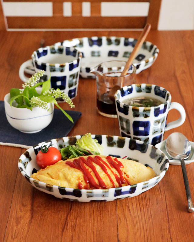 ![]() カレーにぴったりのほどよい深みとかたち。カレー皿としては少し小さめのサイズとなります。 ![]() ひとり分のメイン料理にも活躍します。深みある楕円皿ですので煮込みハンバーグやロールキャベツなどにも重宝。 ![]() ひとり分のオムライスやピラフやパスタなどにもおすすめ。カフェのようなお洒落な雰囲気に♪ ![]() サラダや炒め物などの2人分くらいの料理を盛り付けてもいいサイズ。 ![]() ほんのり青味掛かったなめらかな白磁に描かれた味わいある染付。ぬくもりを感じる手描きらしい筆使いです。 ![]() これくらいの大きさ。厚手の磁器ですのでほどよい重みがあります。 ![]() はがきと比べて。 |